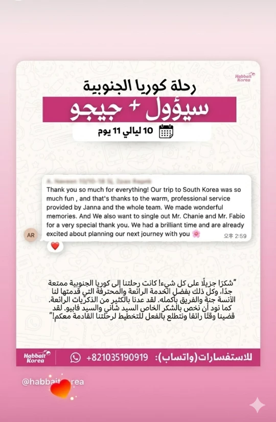 اكتشف تجارب مسافرينا واستمع إلى قصصهم المميزة عن رحلاتهم الرائعة مع حبيت كوريا.