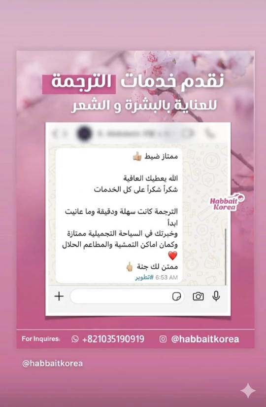 نحن نقدم أفضل الخيارات الطبية ونتعاون مع أفضل الدكاترة في كوريا. لحجز موعد للاستشارة الطبية أو لاجراء عمليات تجميلية، نوفر لكم مترجما لمرافقتكم في جميع الزيارات الطبية، الاستقبال من و إلى المطار. كما نتكفل بتوفير المواصلات من وإلى المستشفى.