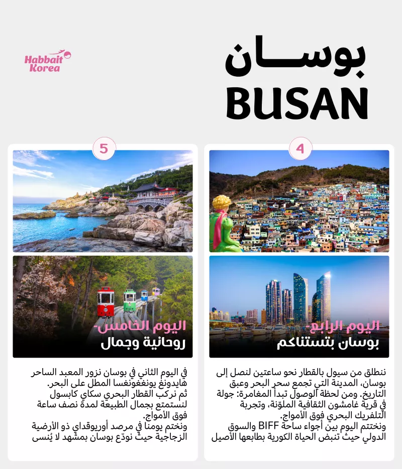 - اليوم 5: تجربة "سكاي كابسول" (القطار البحري) وزيارة معبد يونغغونغسا المطل على البحر.